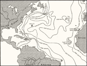 A quantidade de medições de profundidade (sondagens batimétricas) em oceano aberto foi significativamente ampliada no século XIX quando começaram s ser efectuados alguns levantamentos batimétricos no Atlântico e nas Caraíbas. A carta batimétrica do Atlântico Norte, de Matthew Maury (tenente da U.S. Navy), publicada em 1854, foi provavelmente a primeira em que se representam montanhas submarinas no meio do Atlântico (que Maury apelidou de “Middle Ground”). Estas elevações foram mais tarde confirmadas aquando dos trabalhos de mar preparatórios do lançamento do cabo telegráfico transatlântico. A ampliação dos conhecimentos efectuada em cerca de meio século após a publicação do mapa de Maury é bem evidente quando se compara esta com a carta batimétrica editada em 1911, e onde é bem visível já o esboço da crista médio-atlântica.