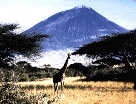 O vulcão activo de Oldoinyo Lengai, na zona dos riftes este-africanos, onde a África está a ser fracturada pelos processos de tectónica de placas, separando uma nova placa, a placa somali, do resto da África, constituída pela placa núbia. |