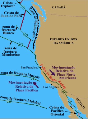 A zona de fractura de Santo André tem cerca de 1 300km de comprimento e, nalguns lugares, dezenas de quilómetros de largura, afectando aproximadamente dois terços da extensão da Califórnia. Esta falha transformante constitui uma fronteira de placas, onde, desde há 10 milhões de anos, as placas Pacífica e Norte-Americana deslizam horizontalmente uma pela outra à razão de cerca de 5cm/ano.