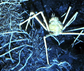 Caranguejo-aranha observado a comer vermes gigantes. (William R. Normark, USGS.) |