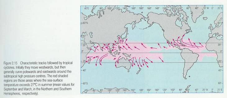 Uma grande quantidade de calor é transportada das baixas latitudes por intermédio de intensos ciclones tropicais. Os ciclones tropicais apenas se desenvolvem sobre o oceano sendo por isso difícil estudar as condições atmosféricas associadas à sua formação.